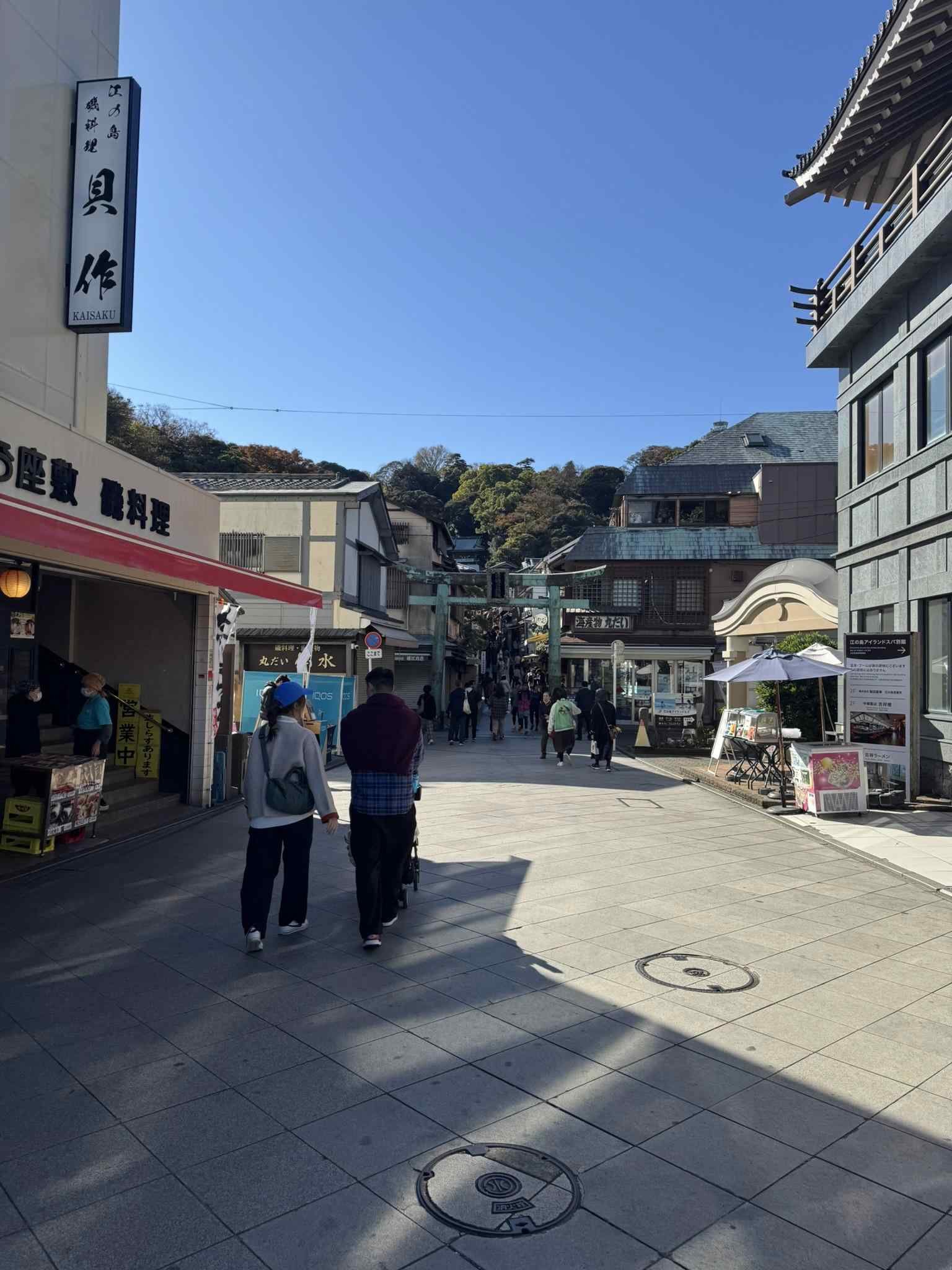The train station is about a 15 minute walk from the island entrance. The entrance is a long stretch of road that connects the island to the mainland, with incredible views of Mt Fuji on the right. The shops lining the streets from the station to the island all had a laid back ocean town feel.