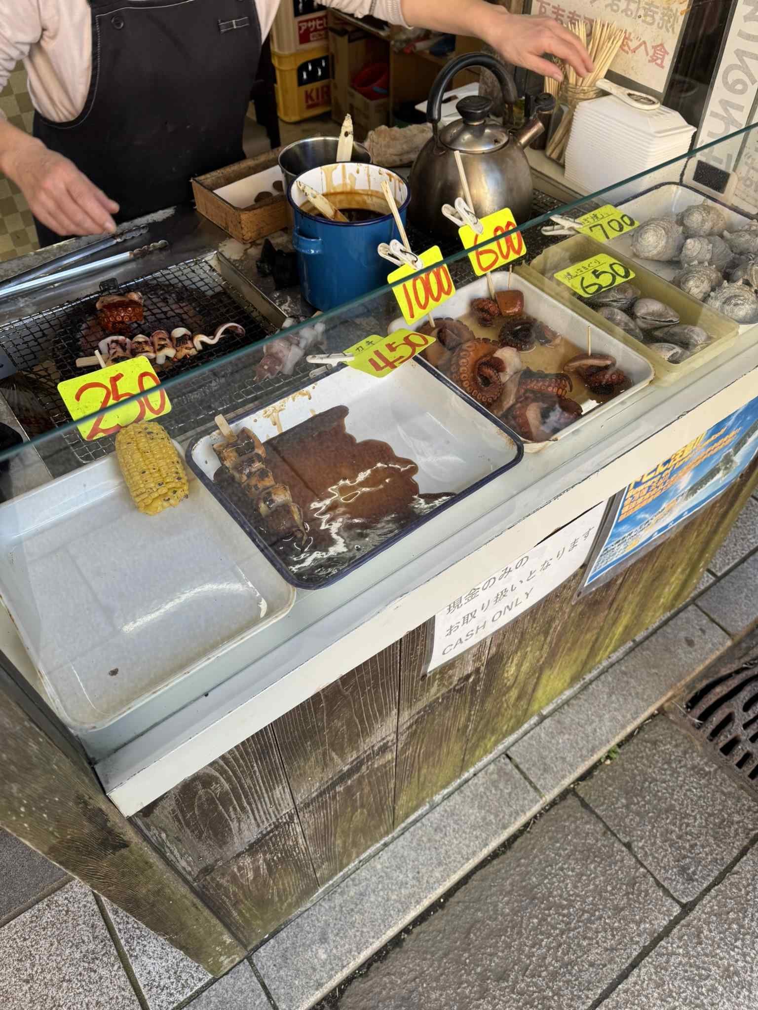 I ended up stopping to try some fresh seafood at this stand, where a cute old lady was working outside of her restaurant. Her daughter was inside taking orders and serving lunch while she worked on the stall outside serving fresh snacks. I figured I needed to try something fresh from the sea since I was here, and I ordered an octopus leg. It was alright haha.