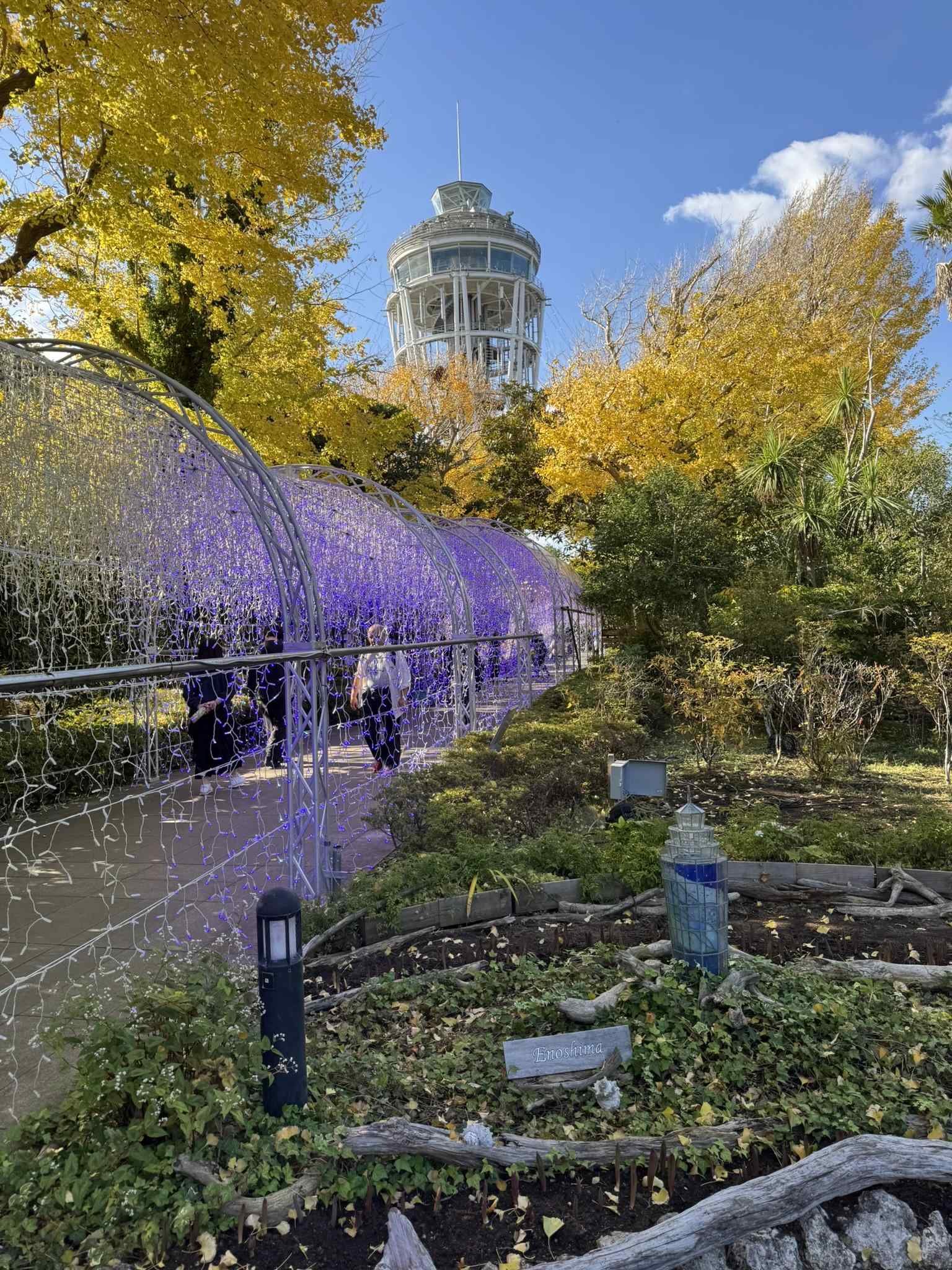 The last thing I went to check out was the garden and sea candle. The gardens were not in peak season but there were some really pretty ginkgo leaves turning a bright yellow while I was there. The park was also preparing for a Christmas lights festival which seemed like it would've been very pretty to see at night. The sea candle stand in the middle of the park up above the island as a perfect lookout 360 degrees. The needle itself is really pretty and I think fits really well with the surrounding scenery.